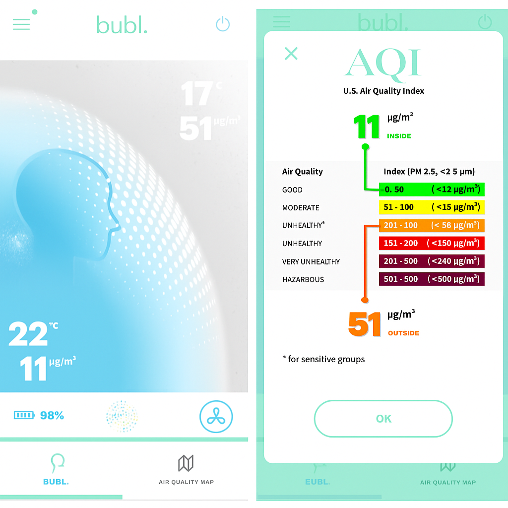 With sensors and bluetooth connectivity you’re able to track air quality in real time, as well as gather useful data how air quality changes over time.