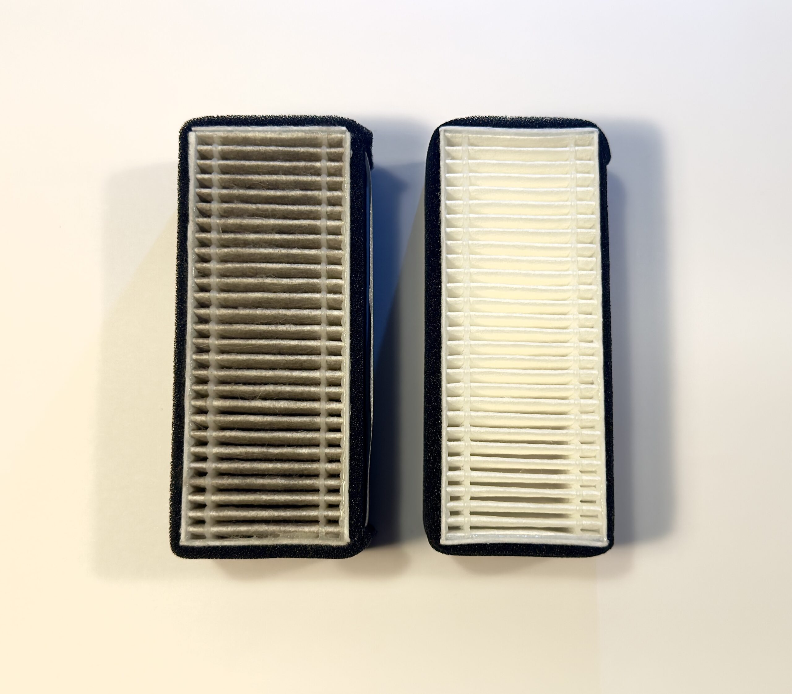 These filters show the difference. To the right you see a new filter, and to the left is a filter after 2 months runtime inside of the cabin of a machine working in dusty enviroments.